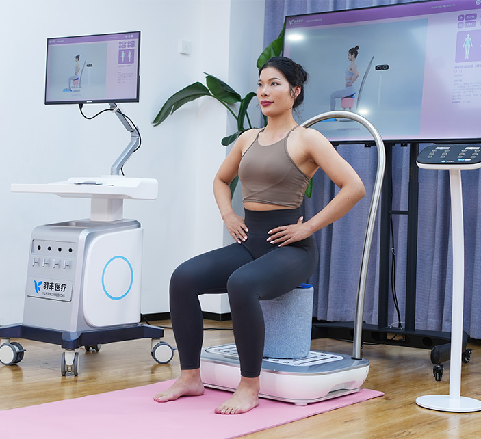 针对办公室人群常见的骨盆倾斜、姿势不良等问题,设备能开展专属的主动运动矫正,同时还能兼顾盆底肌、腹直肌、核心稳定训练:通过模拟人体行走的左右交替斜运动模式,配合物理振动刺激,激活从下肢到躯干的全身肌群,快速增加骨盆周边肌肉力量,维持骨盆稳定性,避免矫正后反弹;对于盆底肌高张 / 无力、圆肩驼背等问题,也能通过振动训练 + 配套动作实现放松与矫正。